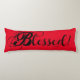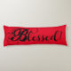 "Välsignat!" En djärv och dynamisk roligt som tillkännager ditt tillstånd av välbefinnande och erkänner dess källa. Denna vackra 20-tums x 54-tums kroppskudde innehåller en hypoallergen, polyesterfiberkudde. Njut av en mjuk yttre yta som är skrynklingsfri, liksom av att tona och krympsäker. Anpassade och tillverkat i Amerika. Finns i: Grått | Blå | ROSA | Tan eller Red