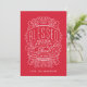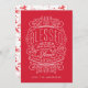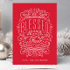 Välsignat årstid, Helgdag julkort rött och vitt. Typografi, skrift i ett vackert vapensköld. Stjärnor och detaljer.