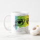 En mugg med en illustration av ett välsignat Solanus Casey citationstecken: "Är många regnbågarna, sunburstsna, stilla, bris-och är hailstorms-vi ansvariga att möta för, vid nåden av guden, oss är kompetent att dråsa in i våra gravar med förtroendet av trött barn in i deras ställen av den fridsamma slummern.",