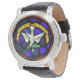 Den här klockan är designad med ett foto av ett fönster av nedfläckad glas med en vit duva och en banderoll som säger: "Blsed are the Peace Makers".