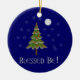 En evergreen under en fullmåne och som dekorerar naturligt med en trädfullt av kardinaler, är den perfekta bakgrunden för den välsignade ord "är!", Den är ett älskvärt långt som ska önskas att dina vänner, familjer och att bemanna dig möter en lyckliga Yule.