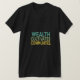 T-shirt-symbolen har texten "Wealth Cultivates" i ett fet, sans-serif-teckensnitt. Brev är placerat i en skiktad form, där varje brev är i olika färg. Det färg som används är ljust och vibrerande, och den övergripande utformningen är öga-fångstande och modern.