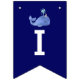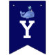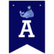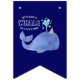 Den här söta födelsedagsbuntningen i flaggor har en söt vattenfärgsval med en party hat och trendig-typografi på en marin bakgrund. Anpassa födelsedagsbuntningen till flaggor genom att lägga till ditt barns namn, ålder och händelsemedatum.