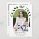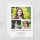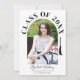 En enkel vit bakgrund med ett foto av din examen på framsidan i en trendig välvd form, med "Årskull" och år, och en dinglande tofs. Det finns också utrymme att anpassa med namn och detaljer. På baksidan finns plats för 3 bilder och dina inbjudningsdetaljer eller annonseringstext.