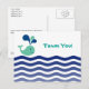 Vågräts vykort för Tack med tecknad valutformning. Anpassa meddelande för valfri tillfälle. Bakåt innehåller mallmeddelande och adress för anpassning.