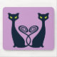 Klassisk retro Black cat silhouette duo med spiral svan som kom ihop i ett hjärta. Grönt öga. Höga kindben och fladdermus öron.