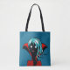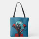 Vampyre-flickväska med en digital illustration av en lustig odöda av mörk med glanande ögon, blått hår, fläkt och pulserande rött skal över mörk blått bakgrund. Roligtens utformning underbar för Halloween.