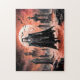 mörk vampyr står i en eerie-kyrkogård under fullt måne, omgiven av fladdermus och ett hemsökt slott i bakgrunden.