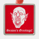Fira säsongen med en mörk vrid med den här metall-julprydnaden som har en slående linje teckning av en vampyr som skäller ut sina fanger mot en rik som krampar röd bakgrund. Med ord "Season’s Hälsning" som elegant visas lägger den här prydnaden till ett fet, skokuserat fläck på din helgdag-dekanter. Perfekt för fläkt av skräckfilmer, Dracula, och det goda estetiska sättet är ett unikt sätt att få både festiv cheer och en aning av det övernaturliga till träd. En minnesvärd Julklapp för den höger människan, denna utsmyckning är perfekt för alla som njuter av att fira helgdagarna med lite mörk, vampyr elegans!