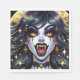 pappra servetter från halloween fest. Honvampyr med guld ögon och tänder och gnistor i hennes hår. Guld fangs, blek skinn. Coola för Halloween eller någon som kärlek vampyrer.