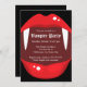 Vampyrefest med läppar och vita fangar på svart bakgrund. inbjudan är i munnen. Underbarare inbjudan för vampyrtemat Halloween och födelsedagsfester.