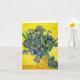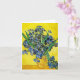 Van Gogh Irises Note Card. Oljemålning på arbetsyta från 1890. Van Gogh skapat många iris-målningar under hela sin karriär, och ändå har Livet med iriser en bukett av nyklippta iriser i en gult vas med gultens bakgrund. Irismen är i fullt blomning och lutar sig över vas kant mot bord. I vanliga Van Gogh mode verkar iriserna vibrerande, tjocka, tunga och livets fullt. En vacker gåva till fläkt av Van Gogh, efterimponerande, iris-målningar och Fransk konst.