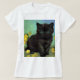 T-Shirt med en svart katt stil i Van Gogh! En flytande svart kattunge sitter bredvid gula blommor mot en grönt och blå bakgrund. En roligt för kattälskare och nederländska konstsamlare!