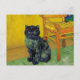 Kort med en svart katt stil i Van Gogh! Den svarta kattunge sitter med en stol på en grönt golv mot en bakgrund av Starry Night dekoration. En fantastisk gåva till kattälskare och nederländska konstsamlare!
