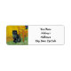 Returetiketter med en svart katt stil i Van Gogh! Den svarta kattunge sitter med en stol på en grönt golv mot en bakgrund av Starry Night dekoration. En fantastisk gåva till kattälskare och nederländska konstsamlare!