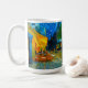 Kaffe Mugg med Vincent van Goghs oljemålning Café Terrace på natten (1888). Gult stjärnor målar den blå natten himlar ovanför en utomhuscafé i Frankrike. En fantastisk gåva till fläkt av postimperialism och nederländsk konst.