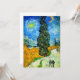 Kort med Vincent van Goghs oljemålning Road med Cypress och Star (1890), även känd som Land Road i Provence by Night. Människor går längs en väg som passerar en vacker cypress träd under en blå natt himlar med gult måne och stjärnor. En fantastisk gåva till fläkt av postimperialism och nederländsk konst.