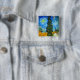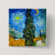 Button med Vincent van Goghs oljemålning Road med Cypress och Star (1890), även känd som Land Road i Provence by Night. Människor går längs en väg som passerar en vacker cypress träd under en blå natt himlar med gult måne och stjärnor. En fantastisk gåva till fläkt av postimperialism och nederländsk konst.