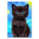 Fotoutskrift med en svart katt i Van Goghs målande Starry Night! Den här blåögda kattungen gazar på ett adorativt sätt från en blå snurrande bakgrund och en ljus gult måne. En fantastisk gåva till kattälskare och nederländska konstsamlare!