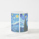 Frosted Glass Coffee Mug featuring Vincent van Gogh’s oil painting The Starry Night (1889). Inspired by his stay at an asylum, the art depicts a village underneath a night sky of blue and yellow moon and stars. A great gift for fans of Post-Impressionism and Dutch art.