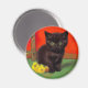Magnet med en svart katt i Van Gogh stil! Detta vackra kattunge ligger med all sannolikhet intill solblommor på en grönt golv mot en röd mur. En söt gåva till kattälskare och nederländska konstsamlare!