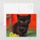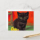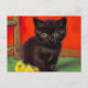 Brevkort med en svart katt i Van Gogh stil! Detta vackra kattunge ligger med all sannolikhet intill solblommor på en grönt golv mot en röd mur. En söt gåva till kattälskare och nederländska konstsamlare!
