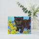 Ett vykort med en Van Gogh stil-katt med solblommor! En söt svart kattunge går ut med gula blommor. En fantastisk gåva till kattälskare och nederländska konstsamlare!
