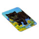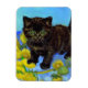 Magnet med en Van Gogh stil-katt med solblommor! En söt svart kattunge går ut med gula blommor. En fantastisk gåva till kattälskare och nederländska konstsamlare!