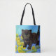 Tote Bag med en Van Gogh stil-katt med solblommor! En söt svart kattunge går ut med gula blommor. En fantastisk gåva till kattälskare och nederländska konstsamlare!
