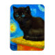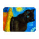 Magnet med en Van Gogh-katt stil i Starry Natt! En fluffig svart kattunge på bord mot en blå natt himlar och gult måne. En perfekt gåva till kattälskare och nederländska konstsamlare!
