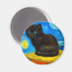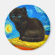 Magnet med en Van Gogh-katt stil i Starry Natt! En fluffig svart kattunge på bord mot en blå natt himlar och gult måne. En perfekt gåva till kattälskare och nederländska konstsamlare!