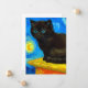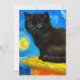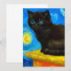 Kort med en Van Gogh-katt stil i Starry Natt! En fluffig svart kattunge på bord mot en blå natt himlar och gult måne. En perfekt gåva till kattälskare och nederländska konstsamlare!