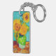 Nyckelkedja med Vincent van Goghs målning i livet som skildrar en bukett av solblommor i grönten vas. En del av hans ursprungliga version i Arles SunBlommor-serien. En underbar gåva till fläkt av blommålningar, postimperialism och nederländsk konst.