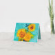 Kort med Vincent van Goghs målning i livet som skildrar en bukett av solblommor i grönten vas. En del av hans ursprungliga version i Arles SunBlommor-serien. En underbar gåva till fläkt av blommålningar, postimperialism och nederländsk konst.
