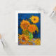 Kort med Vincent van Gogh's Vas med fem solblommor (1888). Fortfarande ett liv som skildrar fem vackra solblommor i grönten vas. En underbar gåva till fläkt av postimperialism och nederländsk konst.
