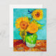 Kort med Vincent van Goghs målning i livet som skildrar en bukett av solblommor i grönten vas. En del av hans ursprungliga version i Arles SunBlommor-serien. En underbar gåva till fläkt av blommålningar, postimperialism och nederländsk konst.