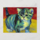 Ett vykort med tabby katt i stil i Van Gogh! Det här söta kattunge ligger på ett golv på trä mot röda väggar och fönster. En fantastisk-gåva till kattälskare och nederländska konstsamlare!