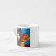 Espresso Kopp med en vacker Van Gogh tuxedo-katt! Den här lilla kattunge ligger intill ett basket av orange blommor på ett rött bord. En underbar gåva till kattälskare och nederländska konstsamlare!
