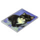 Bärbar dator med en tuxedo-kattunge i stil i Vincent van Gogh! Söt kattunge tar upp lila blommor. En fantastisk gåva till kattälskare och nederländska konstsamlare!