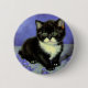 Knapp med en tuxedo-kattunge i stil i Vincent van Gogh! Söt kattunge tar upp lila blommor. En fantastisk gåva till kattälskare och nederländska konstsamlare!
