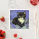 Napkins med en tuxedo-kattunge i stil i Vincent van Gogh! Söt kattunge tar upp lila blommor. En fantastisk gåva till kattälskare och nederländska konstsamlare!