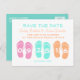 Roligt och färglöst strand flinflip flops för att spara datumet med ditt strandtema eller målbröllop.
