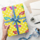 Färgfulla flip-flops på vit polka dots och gult bakgrund.