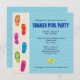 Lägg till lite extra-roligt till din sommarinbjudan till party! En linje med flinflip flops längs en stuckbakgrund i sandmagasin som imiterar en bassäng betong yta. Anpassad party-information placeras mot en himlar blå färgad-studiebakgrund. Finns med matchande produkter.
