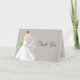 En rödhårig brudpeeks på axeln i en mjuk grått-fuktig bakgrund på detta kort. Ditt skräddarsydda tackmeddelande i mörk grönt svepskäl runt henne. Lägg till ditt eget personlig-meddelande inuti. Perfekt tack för att du följer med matchande inbjudningar, tjänster och porto. Finns i alternerande färg med en blandning av skinn/hår/öga färg för bruden. Kontakta mig genom affären om du föredrar en annan bakgrund.