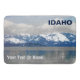 Tittar öster från Sandpoint, ID över Sjö Pend Oreille (pond uh-ray) på en vinterdag; berg täckta av snö i avstånd. Iset har bildats vid kusten och sträcker sig över sjö. Blått och grått är det dominerande färg. Text som läser "IDAHO" visas också. Och de är ett ställe att lägga till ytterligare text.
