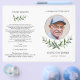 Med en halv krans av fredligt grenar, ger den här vattenfärgen ett begravningsprogram. Designat för att tryckas på båda sidor och sedan vikas in i hemmet, på framsidan visas namn om den avlidne och du kan infoga ett favoritfoto i silver-effektcirkuläret ram, medan insidan kan redigeras med önskad serviceordning eller spelar ingen roll. Vid en svår tidpunkt passar denna glupska gröna design med silver gräns för en livstjänst firande, en religiösa kyrkans minnesgudstjänst eller en humanistisk ceremoni. FFAUX silver folieeffekten är tryckt och INTE metallisk.