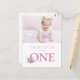Den här rosa boho blommigt-inbjudan är perfekt att fira din första födelsedag i flicka. Med ett lysande och dynamiskt färg, innehåller det här vykortet för anpassningsbar ditt barns foto, namn och alla dina party-detaljer i elegant-typografi för att ange tonen för en vacker händelse.