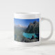 Vandrare med utsikt över turkosfärgat sjö jumbo mugg