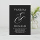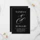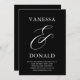 Modern bröllop spara datum-kort med enkel och minimal layout med namn och en elegant i stort format ovanför din händelseinformation. Temat färg är vitt över en svart bakgrund och kan ändras i designredigeringsverktyget i verktyg.